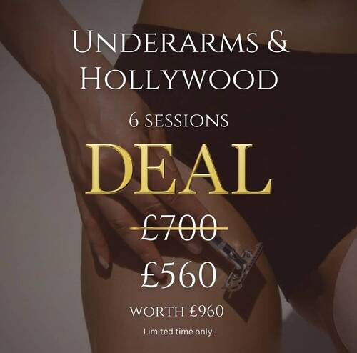 Half legs, underarms & full hollywood. Worth £1440 when booked individually!